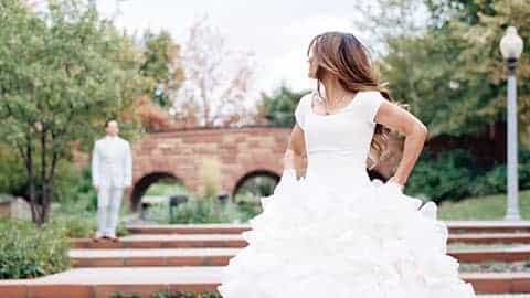 In addition to the gown, brides often wear a veil and carry a bouquet of flowers, a small heirloom such as a lucky coin, a prayer book, or other token. In Western countries, a bride may wear "something old, something new, something borrowed, and something blue"; a bridal purse (or money bag) is also common.
